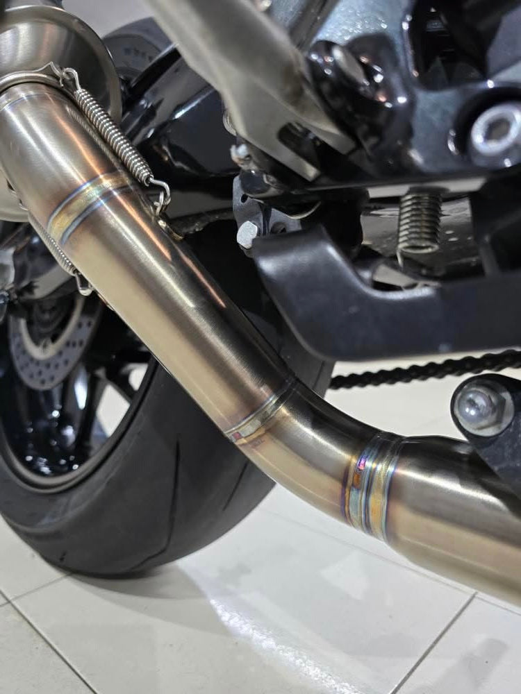 This performance exhaust is built for riders who want to unlock the full potential of their machine. Fully handcrafted in the Netherlands and equipped with an integrated mid-silencer and a handmade stainless steel end silencer all designed by our head of design Bruno Carmo, this system delivers the ideal combination of power, sound, and craftsmanship.